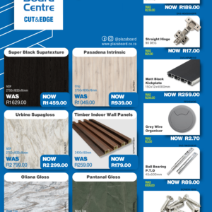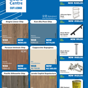 Revamp your space with our February Promotion! Refresh your interiors this February with our exclusive board and cabinet fitting specials. Designed for quality, durability, and modern finishes, our range is ideal for kitchens, offices, and custom projects. Upgrade your space with confidence and value. View our February specials now and start building better. Click the link to view our specials. Please visit your PBC Vereeniging branch for In-store specials.