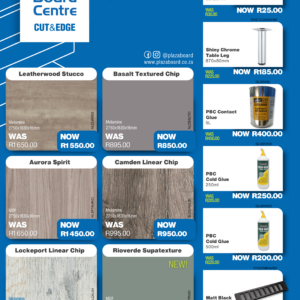 Revamp your space with our Summer Promotion! Refresh your interiors this February with our exclusive board and cabinet fitting specials. Designed for quality, durability, and modern finishes, our range is ideal for kitchens, offices, and custom projects. Upgrade your space with confidence and value. View our February specials now and start building better. Click the link to view our specials. Please visit your PBC Rustenburg branch for In-store specials.