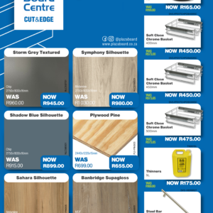Revamp your space with our February Promotion! Refresh your interiors this February with our exclusive board and cabinet fitting specials. Designed for quality, durability, and modern finishes, our range is ideal for kitchens, offices, and custom projects. Upgrade your space with confidence and value. View our February specials now and start building better. Click here to see products on special Please visit your PBC Lenasia branch for In-store specials.